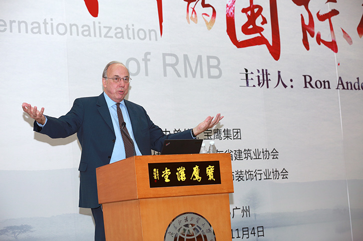 講座中, Ron Anderson教授與同學們深入對話,探討了人民幣的國際化之路。他從中國為人民幣國際化之路做出的諸多努力入手,通過豐富的金融知識說明了人民幣國際化之路戰略在中國經濟長期發展中占據的重要地位,并表示對中國的經濟發展充滿信心。