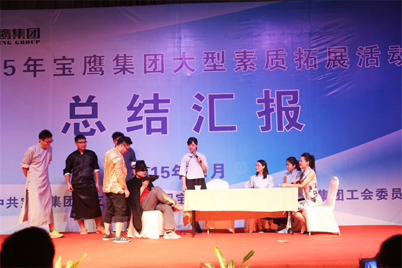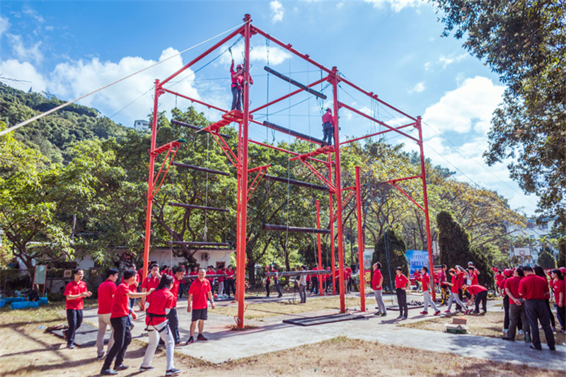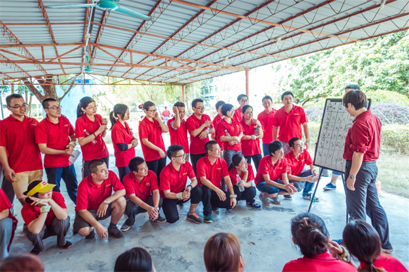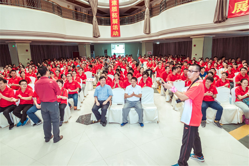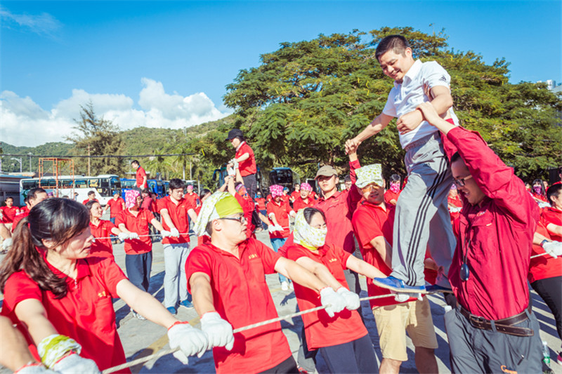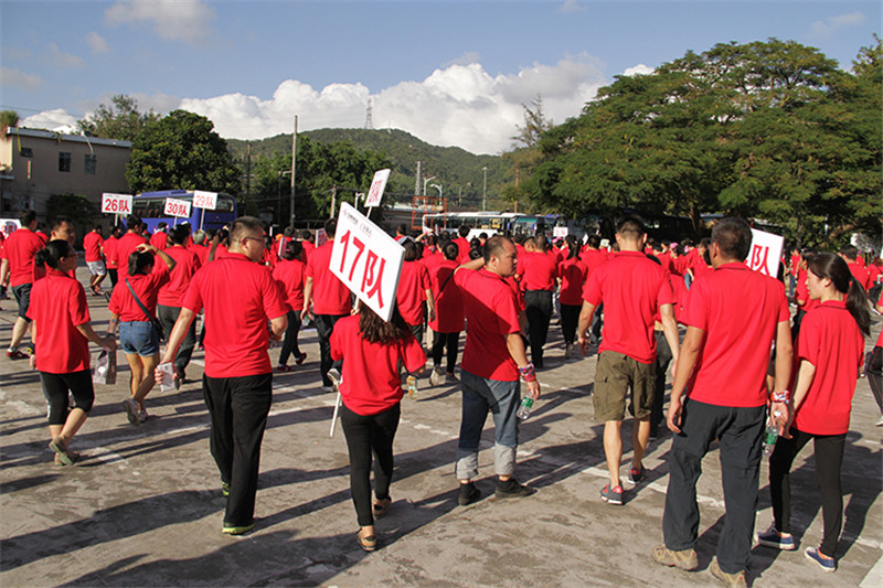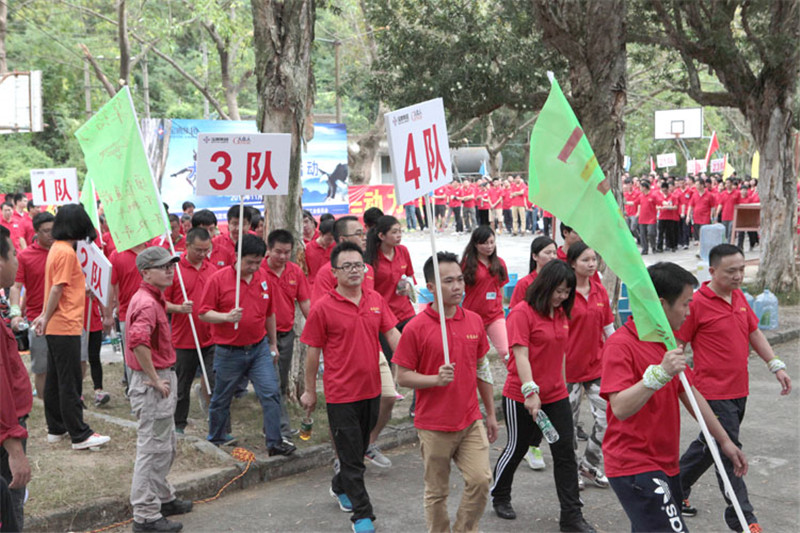 7日一大早,參加拓展活動(dòng)的員工即分乘10輛大巴,滿懷期待地奔赴此次拓展活動(dòng)的開展基地——深圳溪涌工人度假村。到基地車甫一停穩(wěn),教官的哨聲便催促著眾人馬上列成整齊的隊(duì)伍,一隊(duì)一隊(duì)地行進(jìn)至主訓(xùn)練場(chǎng),聆聽寶鷹集團(tuán)董事長古少波在拓展訓(xùn)練正式開始前的講話。
