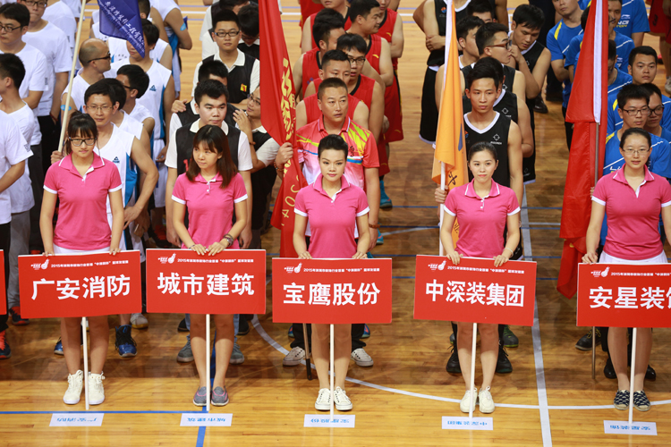 10月16日,深圳市裝飾行業首屆“中深裝杯”籃球友誼賽于深圳市體育中心籃球館盛大開幕。深圳市裝飾行業協會會長高剛,深圳市體育局副局長柯剛明,福田區人大副主任、福田區總工會主席王躍慶,寶鷹集團董事長古少波,中建南方董事長劉慧永等領導出席了開幕式,來自裝飾行業的近千名員工參加了開幕式。寶鷹集團籃球隊的十五名運動健兒將出征此次比賽,近200余位寶鷹人亦來到比賽現場,為寶鷹健兒吶喊助威。