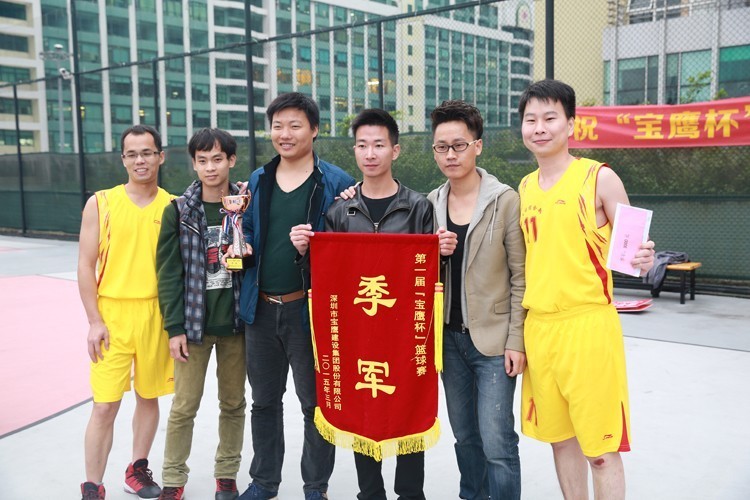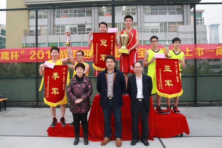3 月4日下午,“寶鷹杯”2014辭舊迎新暨慶祝寶鷹股份上市一周年籃球賽總決賽于深圳車公廟OWIN球場舉行。寶鷹集團董事長古少波、工會主席溫武艷、監(jiān)事會主席胡蘭萍等領(lǐng)導(dǎo)蒞臨決賽現(xiàn)場并為獲獎球隊頒獎。