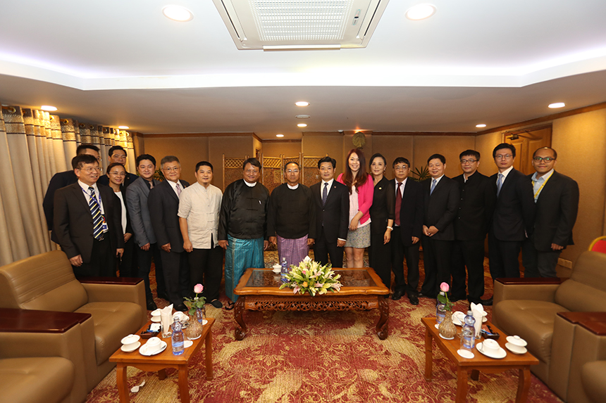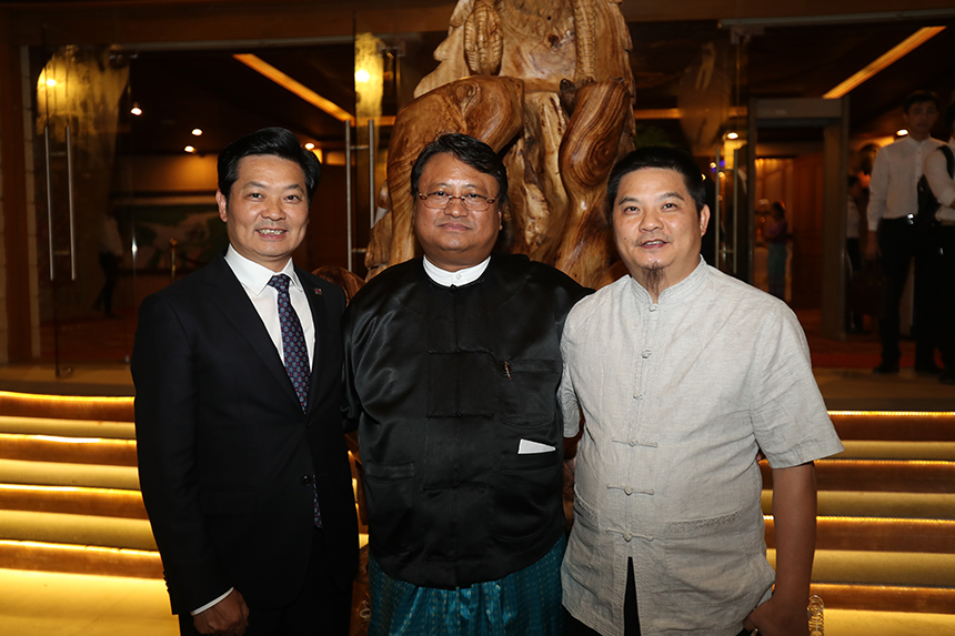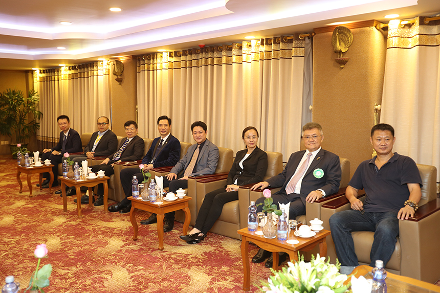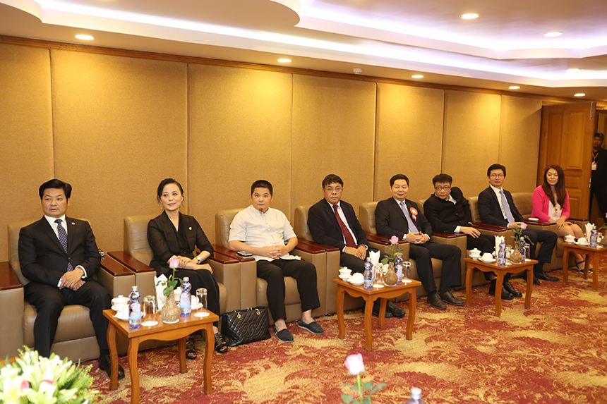 論壇期間,在緬甸投資發展協會主席、緬甸KMA集團主席欽茂皚的陪同下,緬甸副總統吳敏瑞在緬甸皇家內比都酒店親切會見了受邀參加論壇的中資企業代表寶鷹集團董事局主席古少明一行。