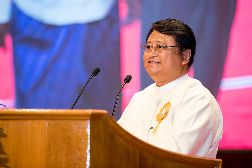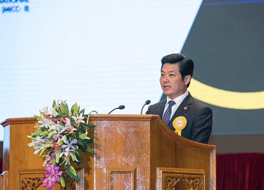 ▲緬甸投資發展協會主席、緬甸KMA集團主席欽茂皚致歡迎辭