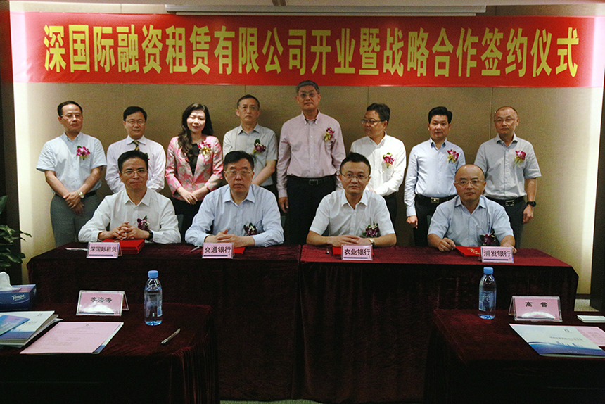根據銀行戰略合作協議,新成立的深國際租賃將獲平安銀行、農業銀行、交通銀行、江蘇銀行、民生銀行、廣發銀行、東莞銀行、廣州銀行、廣發銀行、浦發銀行等9家銀行授信支持。