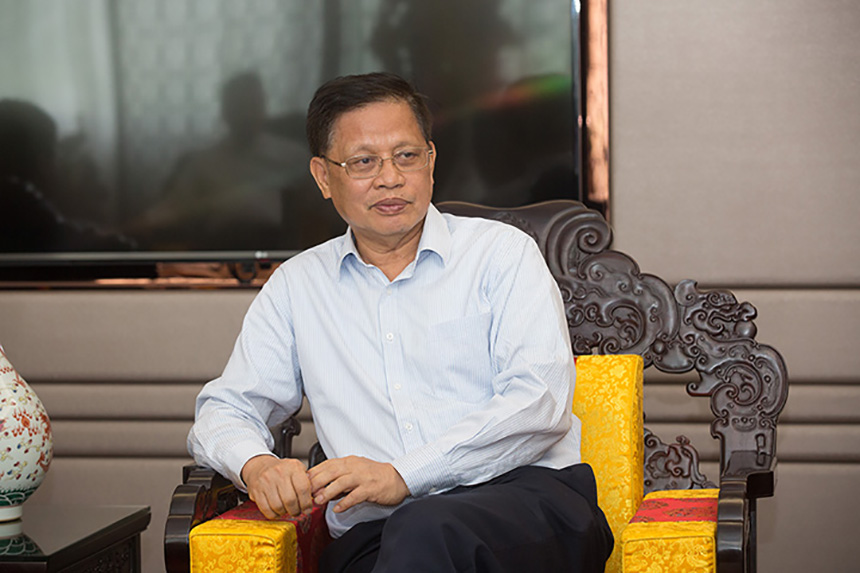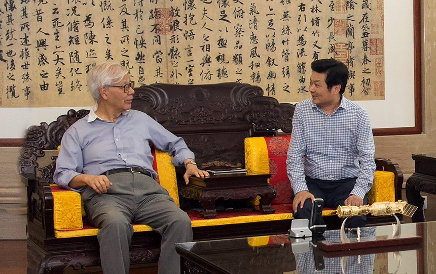▲寶鷹集團(tuán)董事局主席古少明期待與鄧文中院士在“一帶一路”沿線國(guó)家市場(chǎng)深入合作