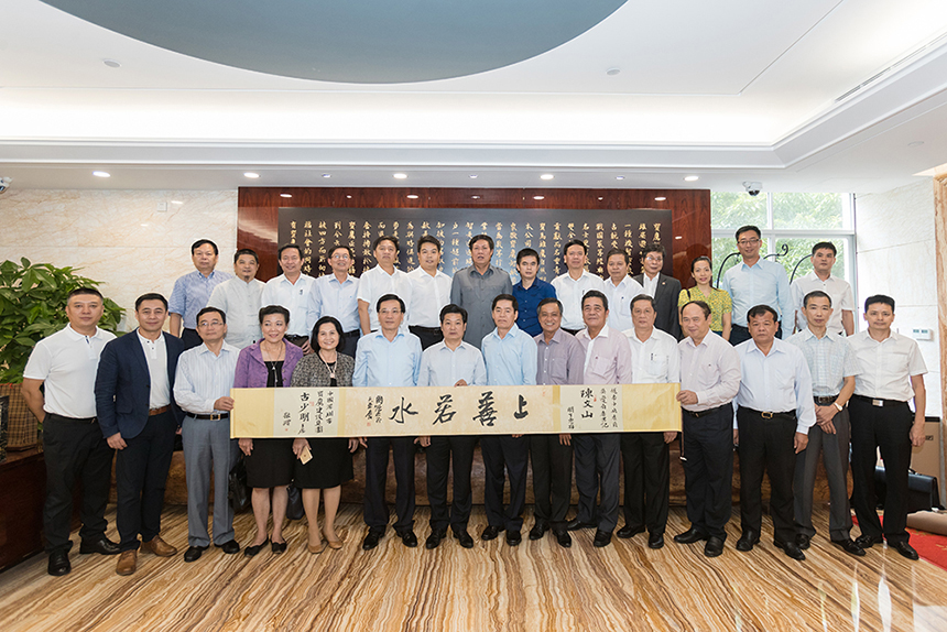▲寶鷹集團向越南共產黨中央委員、奠邊省委書記陳文山贈送周國城書法作品《上善若水》