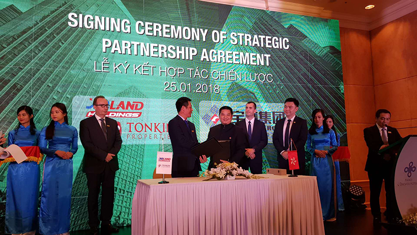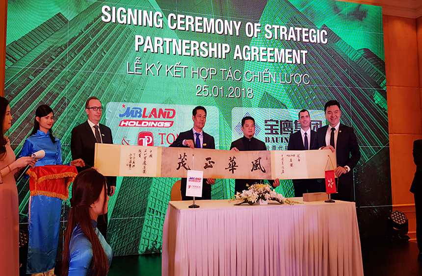 1月25日,寶鷹股份全資子公司寶鷹國際建設投資公司(以下簡稱寶鷹國際)與越南MBLAND & TONKIN PROPERTIES股份有限公司(以下簡稱越南MBLAND公司)在越南河內簽署框架合作協議。