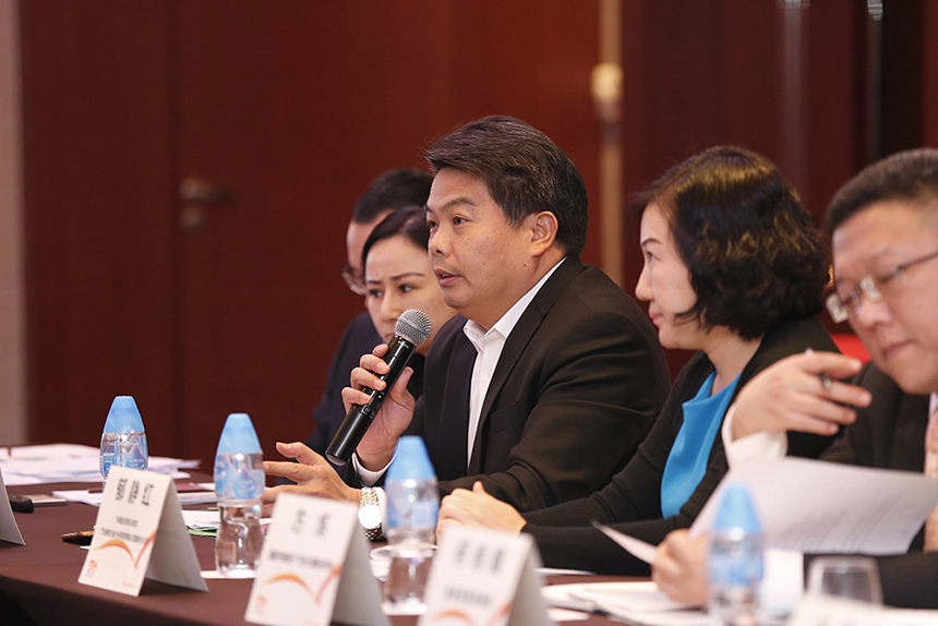 ▲寶鷹股份董事長古少波在圓桌會議上表示企業在“走出去”時更應該以塑造和維護“中國品牌”為己任