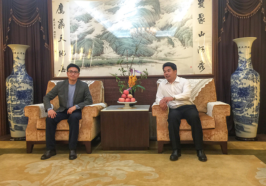 ▲古少波董事長(zhǎng)陪同劉自鴻博士了解主營(yíng)業(yè)務(wù)及企業(yè)文化