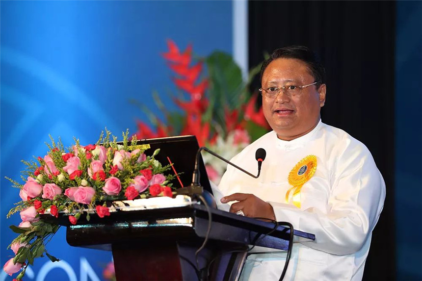 ▲仰光省省長吳漂敏登(H.E. U Phyo Min Thein)表示省政府將繼續助力把仰光打造為外國投資項目基地,致力于向外企創造優越的投資及發展條件,誠摯歡迎來自四方的投資者加入仰光省投資發展隊列。