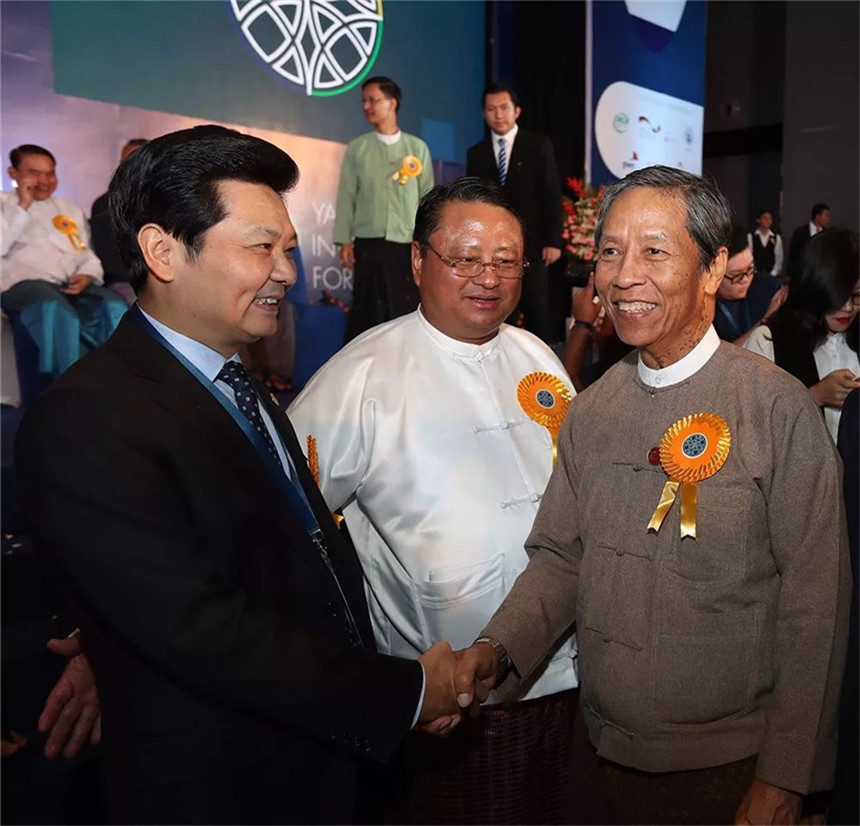 論壇期間,仰光省省長吳漂敏登(H.E. U Phyo Min Thein)親切會見了受邀參加論壇的中資企業代表寶鷹集團董事局主席古少明一行。