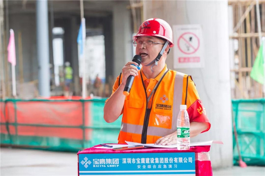 寶鷹集團總工程師、副總裁王建國強調安全生產無小事,寶鷹集團始終堅持并不斷加強應急安全管理理念,為員工的生命財產負責,為客戶負責,以“生命至上,安全發展”的安全管理理念為柔宇項目建設保駕護航。
