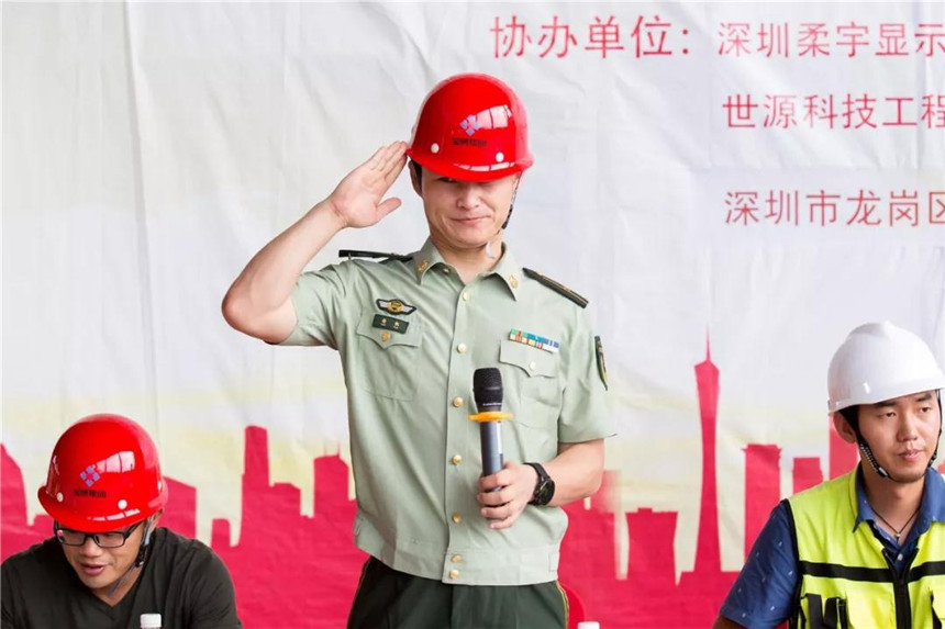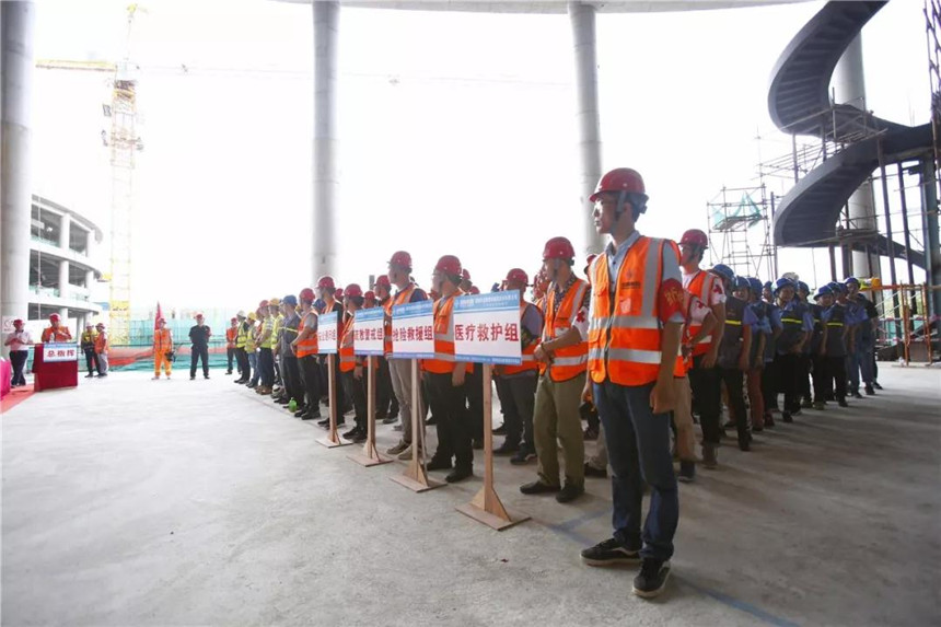 深圳柔宇顯示技術有限公司采購中心總監張楊洋、廠務中心總監熊成文、基建工程部經理曹銀,世源科技工程有限公司安全經理馬盼龍,廣州珠江工程建設監理有限公司總監關鍵剛、總監代表張小曼,深圳泛華工程集團有限公司項目經理陳琳、安全經理彭衛軍,寶鷹集團副總裁羅志龍參與演習。