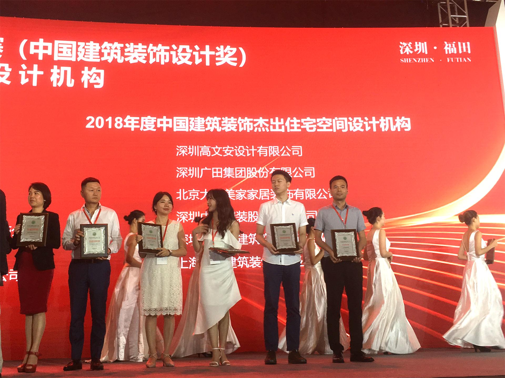 ▲寶鷹集團控股子公司深圳高文安設計有限公司榮獲“2018年度中國建筑裝飾杰出住宅空間設計機構”獎項