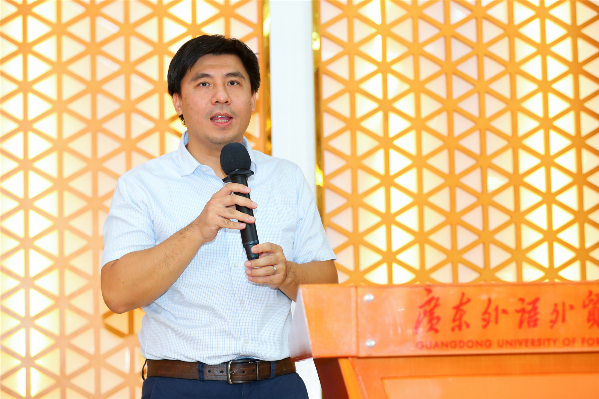 ▲廣東外語外貿大學會計學院副院長湯勝介紹參會嘉賓