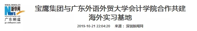 廣東外語外貿大學與寶鷹集團于2015年建立校企合作關系,雙方在教學、用人、“一帶一路”研究及活動等多方面深度合作。本次雙方聯合開設的“小語種+會計”海外實習基地,是校企雙方資源共享,實現聯合培養國際化創新型、應用型人才的新模式,雙方將在學生實習、就業招聘、產品研發、成果轉讓、技術培訓等方面開展更廣泛的合作,培養高層次、復合型、國際化高端會計專門人才,適應對外交流合作發展的需要,共同服務國家“一帶一路”倡議。
