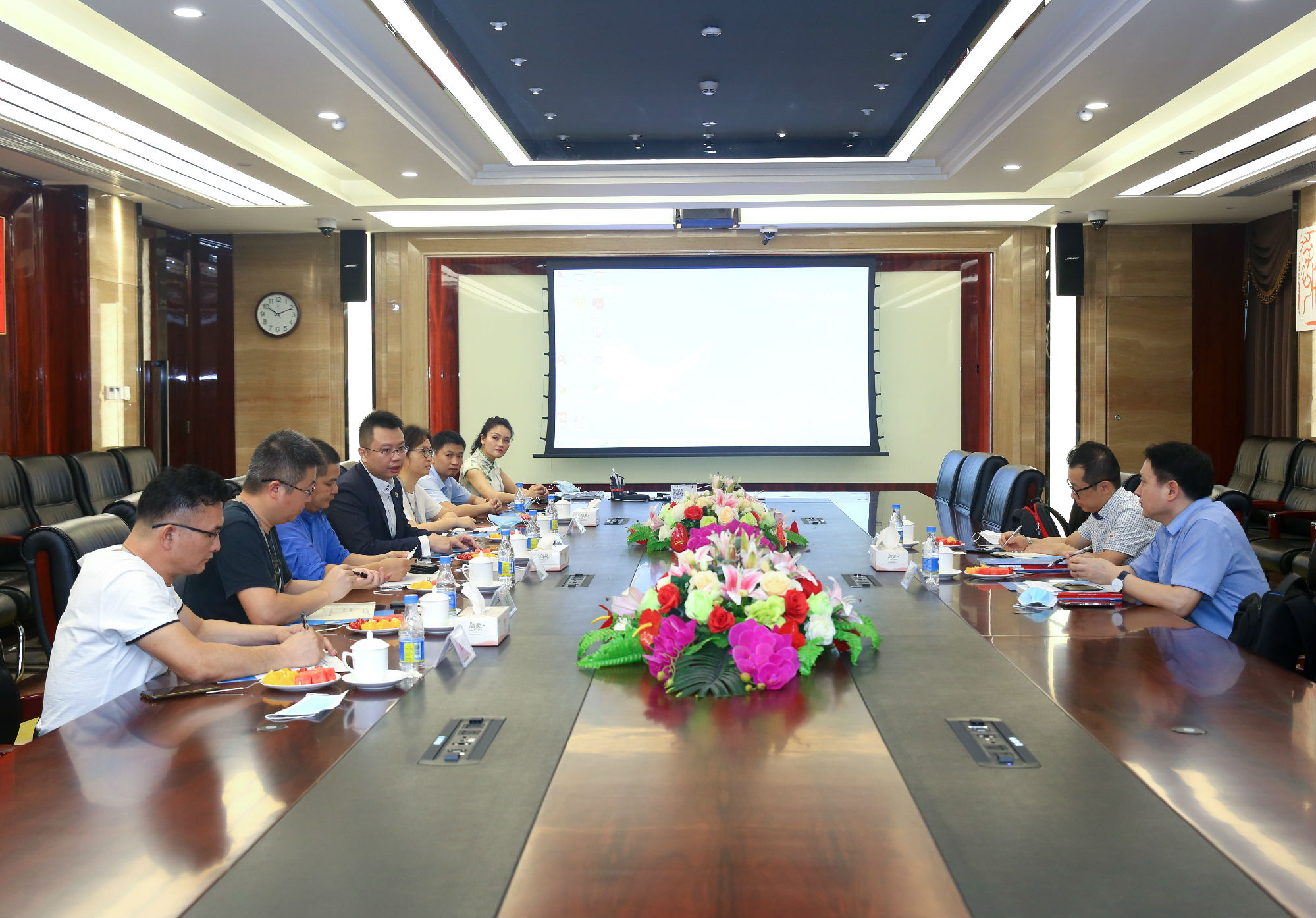 公司控股股東——珠海航空城發展集團有限公司董事長李文基、寶鷹集團董事局主席古少明、常務副總裁古樸熱情接待了吳樂總裁一行。雙方在小鎮開發、產業協同、教育配套、地產運作以及項目精裝修等領域展開了交流并達成共識,希望達成深入合作,實現優勢互補,互利共贏。