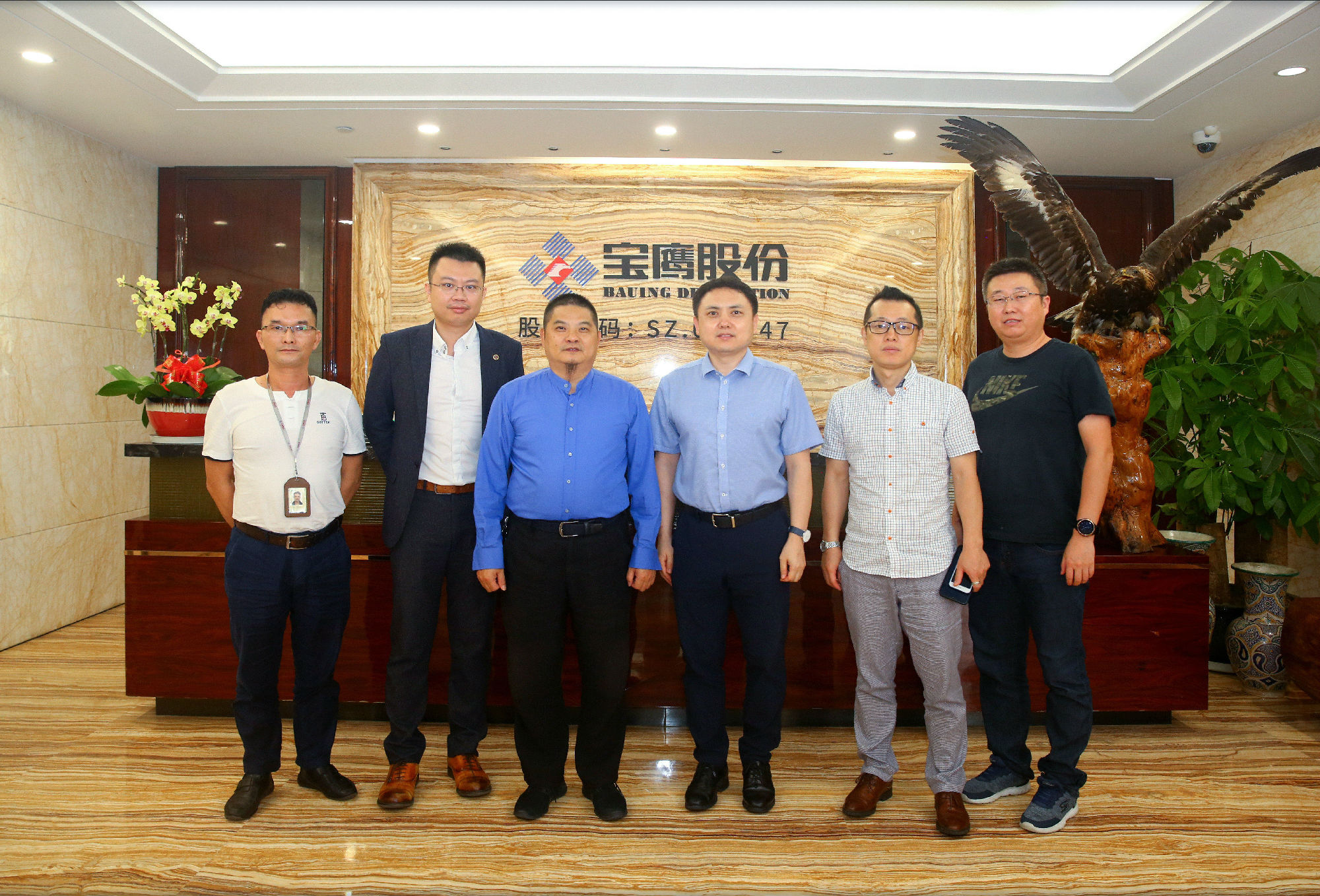 ▲寶鷹集團常務副總裁古樸、董事羅曉東接待三星物產建設(上海)有限公司部長金成俊、總經理丁世鎮一行