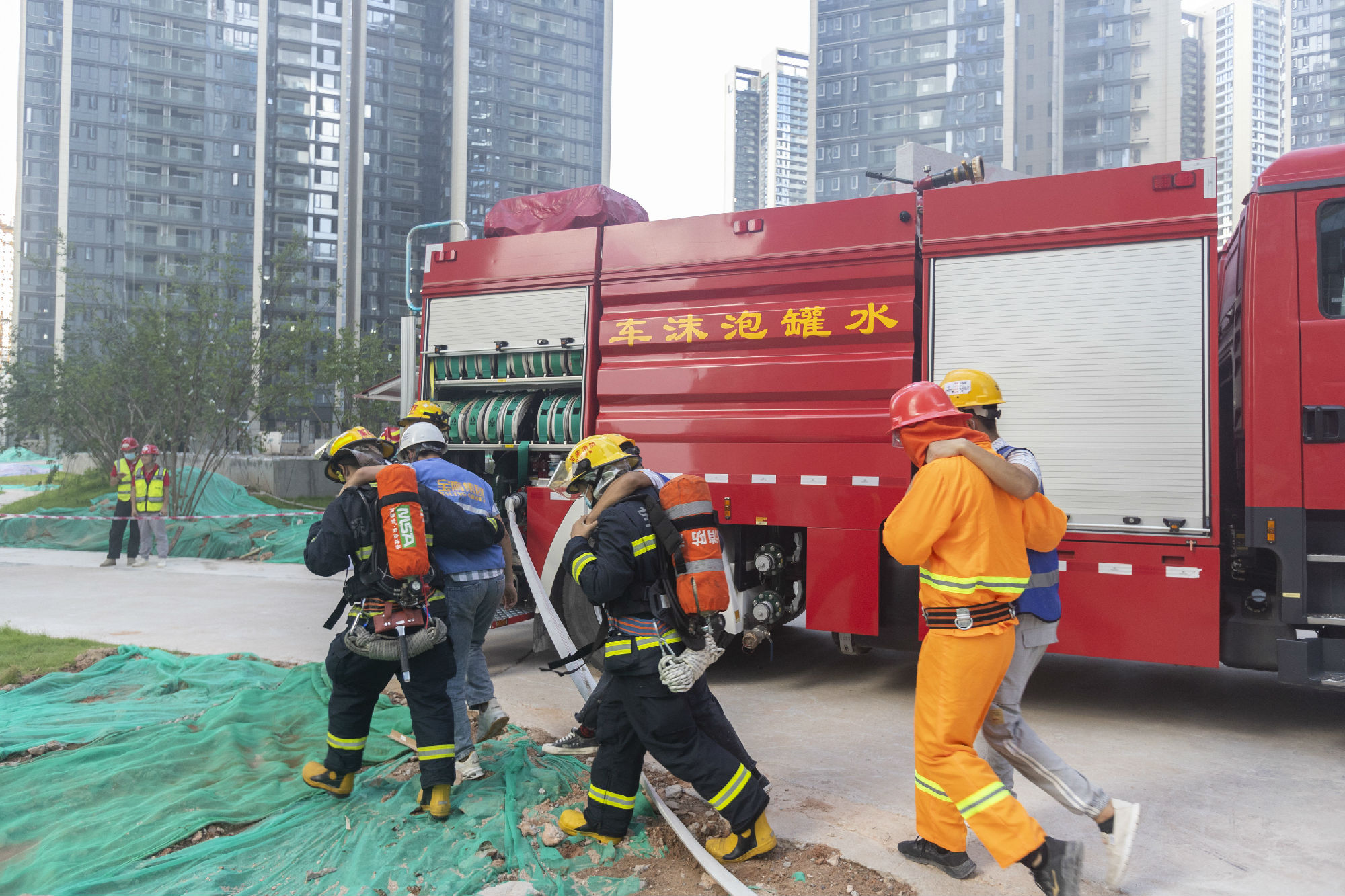 上星萬科星城工地開展批量裝修安全事故防控及應急綜合演練現場