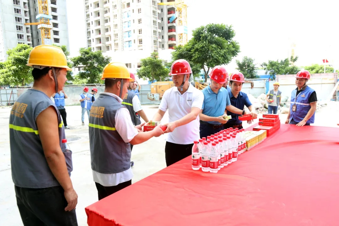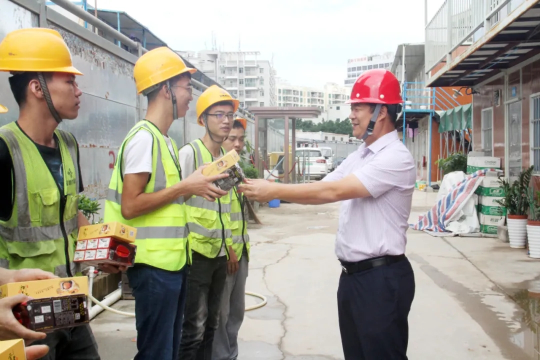于泳波總裁為項目部同事分發慰問品,向節日期間奮戰在一線的工友們表示感謝。他強調,寶鷹集團要始終堅持“以客戶為中心”的服務理念,項目管理團隊要善于與客戶溝通,充分了解客戶的需求,服務客戶。同時,要強化責任意識,筑牢安全防線,嚴格質量管控,準確把握項目自身特點及難點,不斷優化工程施工方案,科學管理、精心部署,有效推進項目建設。