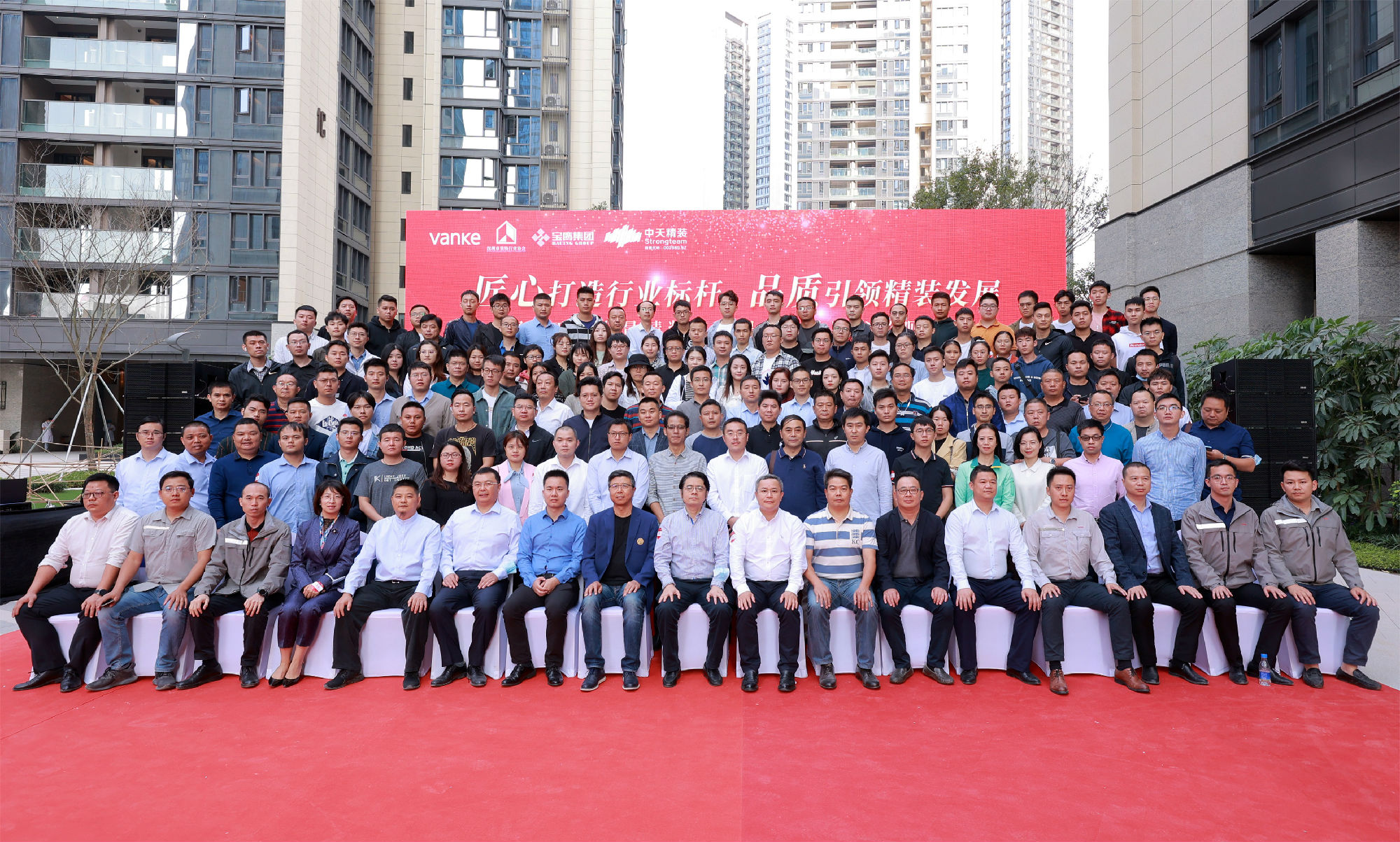 11月28日,由深圳市裝飾行業協會主辦,深圳萬科、寶鷹集團、中天精裝聯合承辦的“深圳萬科批量精裝修工程交付品質省級觀摩會”在深圳萬科星城名邸項目舉行。本次活動共有來自深圳市裝飾行業企業家和專業人員等200余人參加。廣東省住房和城鄉建設廳黨組成員、副廳長蔡灜,廣東省建筑業協會會長梁劍明,深圳市裝飾行業協會會長高剛,深圳萬科開發建造部總經理程曉波,寶鷹集團董事長古少波,中天精裝董事長喬榮健等出席。