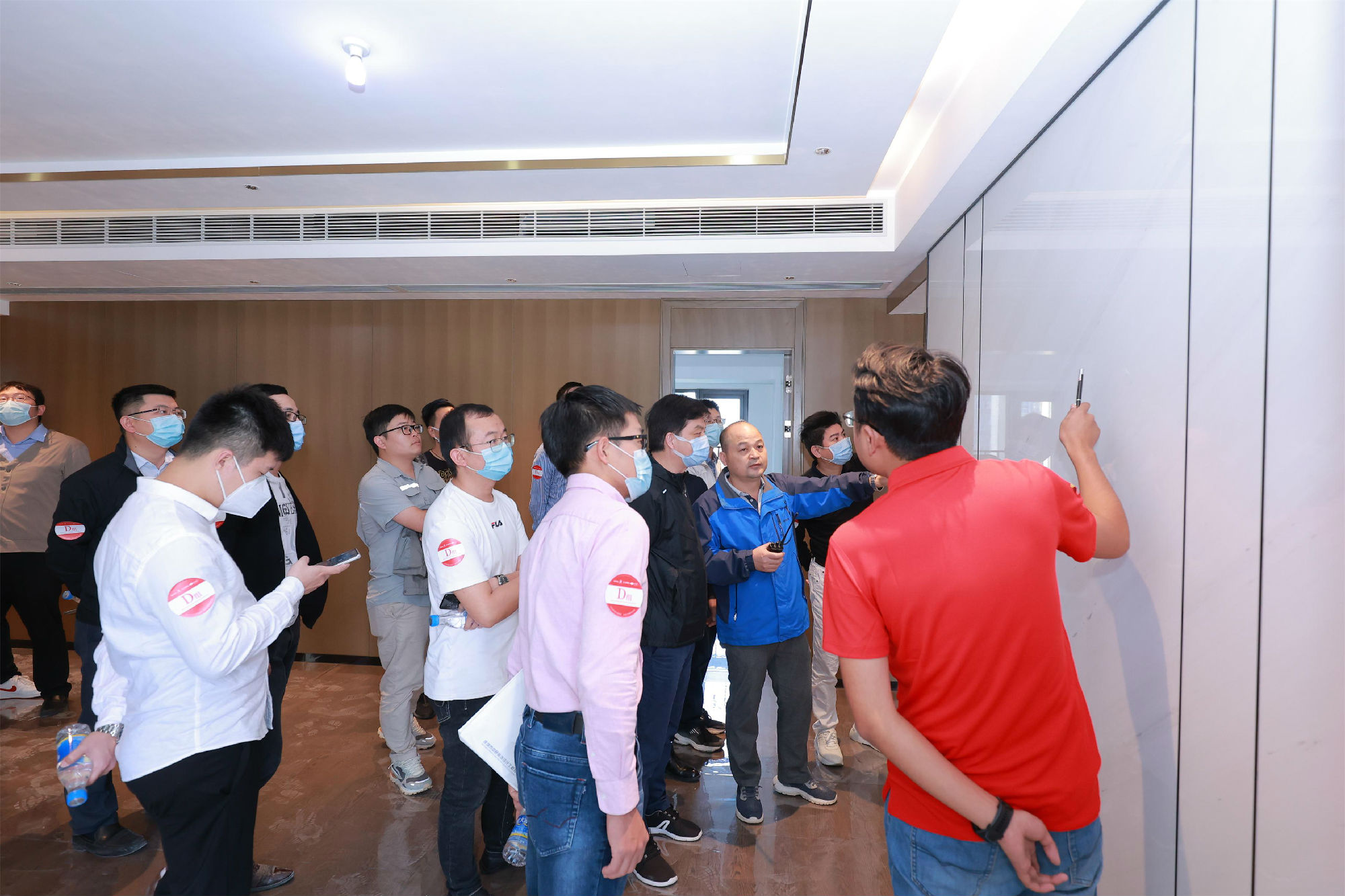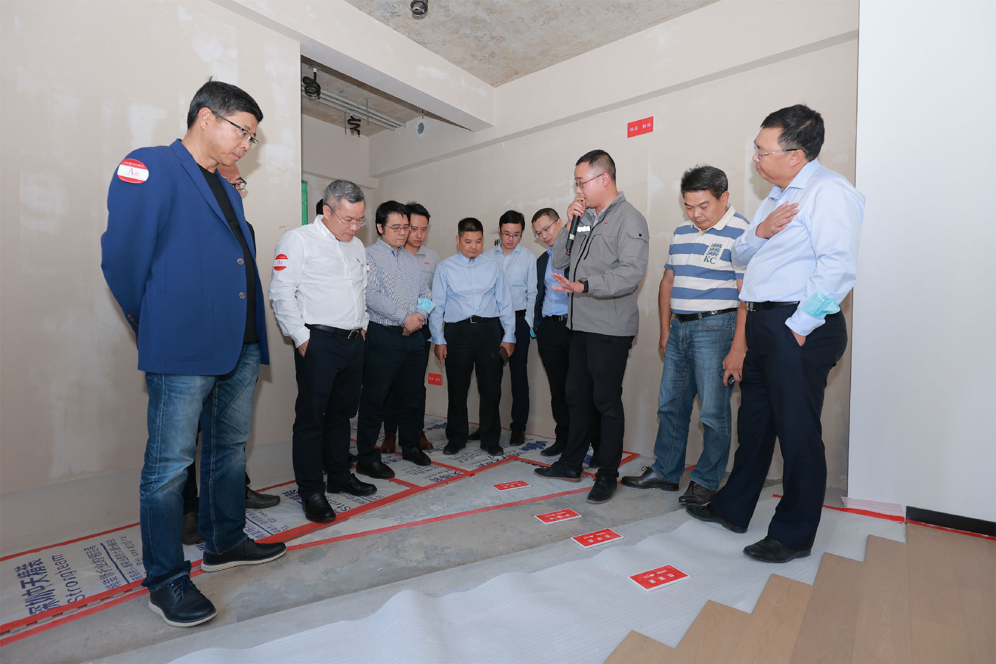 本次觀摩會以“匠心打造行業標桿,品質引領精裝發展”為主題,旨在加強建筑裝飾企業間技術交流,提升行業批量精裝修業務能力,弘揚工匠精神,引領精裝發展。項目現場,與會人員先后觀摩了精裝樣板間和工序樣板間,詳細了解了油漆、燈槽、卡式龍骨吊頂、地面石材鋪貼施工安裝工藝以及全過程實測實量等相關內容。