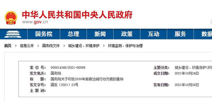 2、國務院關于印發2030年前碳達峰行動方案的通知