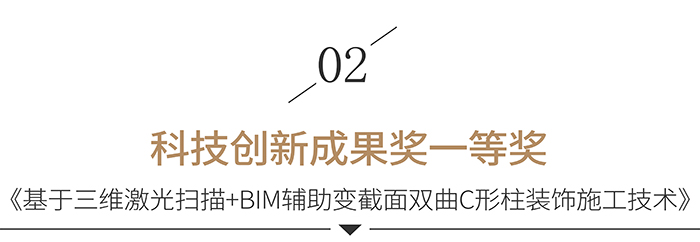 本次公布的名單中,寶鷹集團的《廣西金融廣場酒店二次裝飾設計》獲設計創新獎一等獎,《基于三維激光掃描+BIM輔助變截面雙曲C形柱裝飾施工技術》獲科技創新成果獎一等獎,《大空間采光頂桁架結構鋁板飾面施工技術》獲科技創新成果獎二等獎,《橫琴星藝文創天地項目一期地塊1精裝修工程-非酒店標》、《中國海南海花島國際會議中心室內精裝修工程》獲科技創新工程獎二等獎。