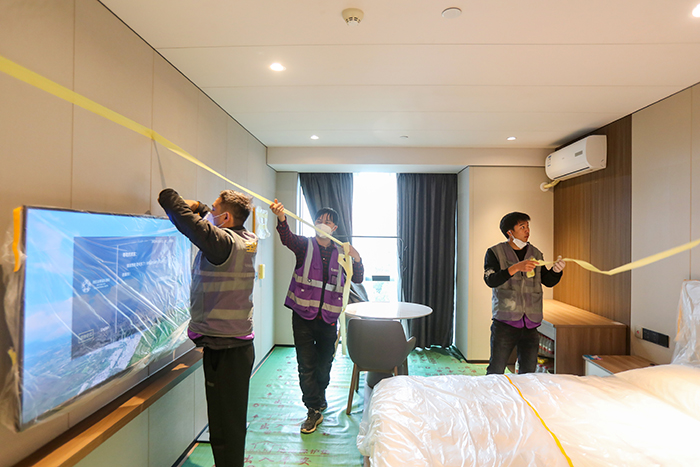 受到新一輪疫情的影響,時(shí)下,疫情防控正值關(guān)鍵時(shí)期。為了穩(wěn)定疫情防控大局,助力疫情防控大計(jì),寶鷹集團(tuán)聯(lián)手云記科技組建專業(yè)團(tuán)隊(duì),放棄春節(jié)假期,全力投入到灣區(qū)會(huì)展國(guó)際酒店自消殺抗新冠病毒功能材料的施工中,助力酒店筑牢疫情防控的“第一道防線”。