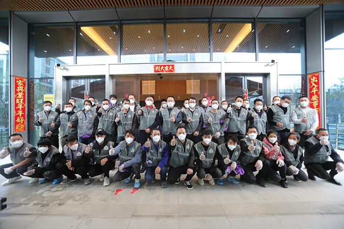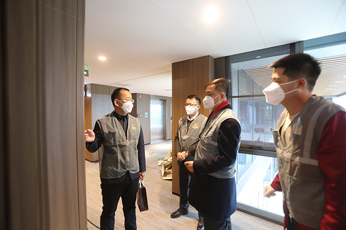 2月1日,農(nóng)歷大年初一,寶鷹建設(shè)董事長(zhǎng)薛依東、總裁于泳波、常務(wù)副總裁劉清松一行來(lái)到灣區(qū)會(huì)展國(guó)際酒店項(xiàng)目,檢查項(xiàng)目施工和疫情防控工作,看望慰問(wèn)春節(jié)期間堅(jiān)守崗位的一線建設(shè)者,并代表公司領(lǐng)導(dǎo)班子向節(jié)日期間奮戰(zhàn)在各條戰(zhàn)線的員工及家屬致以新春的問(wèn)候和美好的祝福。