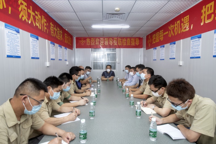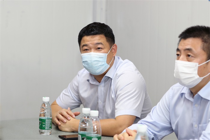 鐘志剛對項目建設提出具體要求,項目團隊要嚴格落實防疫要求,牢記甲方囑托,開足馬力搶工期,爭分奪秒抓進度,確保防疫生產“兩不誤”,用實際行動打造標桿工程。