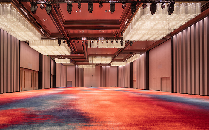 以文化為基礎、以藝術為載體。酒店多功能廳、宴會廳全部采用訂制的大型吊燈,搭配淺色墻面和印有文化符號的地毯,使整個空間簡潔商務,既有南充特有的文化標簽,又有凱悅酒店獨有的品牌調性。同時,裝配的視聽系統、遠程打印、視頻會議等智能設備,可以滿足商務會議、大型會展、婚禮等不同規格活動需求。
