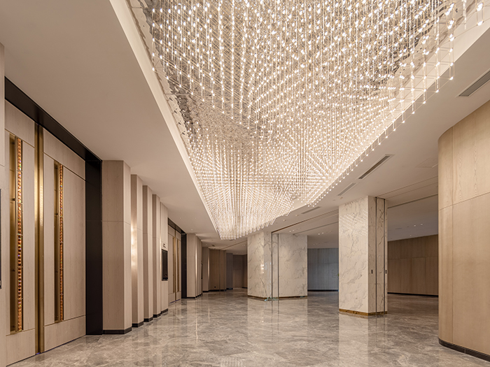 本項目為設計-采購-施工EPC總承包模式,施工范圍包含了精裝修所轄的電氣、給排水、弱電智能化、暖通、消防系統以及廚房設備、家具藝術品等專業設計及施工。面對專業領域多、線路復雜、工期短、標準高等一系列困難,項目部科學統籌,圍繞項目組織設計團隊,引用BIM技術,精準劃分專業施工線路、施工區域,合理部署設計與施工現場。做到設計先行及樣板引路,為項目順利開展打下良好基礎。