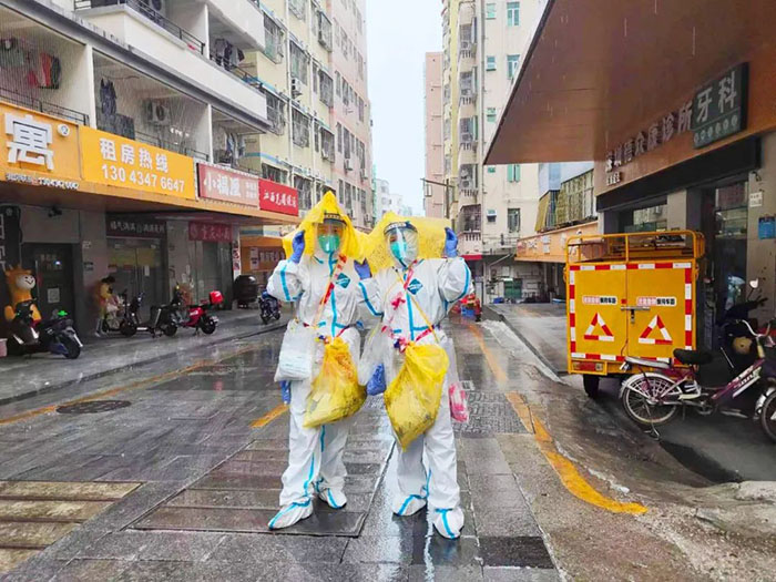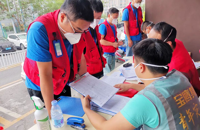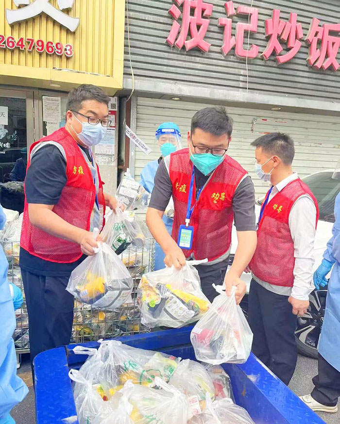 在寶鷹第五黨支部書記、副總裁陳貴涌的帶領下,志愿者們迅速集結到位,并在社區的協調安排下,快速化整為零,分成1個指揮組和多個網格行動小組,開展維護秩序、核酸檢測、做流調、環境消殺、垃圾清運、物資配送、配藥送菜、人員轉運等工作。大家相互配合,將各項工作安排得井井有條,有效消除了居民的焦慮情緒。