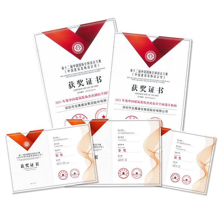 近日,2022中國建筑裝飾產業發展論壇暨第十二屆中國國際空間設計大賽頒獎典禮在深隆重舉行。活動發布了第十二屆中國國際空間設計大賽獲獎名單,寶鷹設計再創佳績,收獲2021年度中國建筑裝飾杰出公共空間設計機構、2021年度中國建筑裝飾杰出酒店空間設計機構、酒店空間方案類金獎、酒店空間方案類銀獎、商業空間方案類銀獎五項大獎。