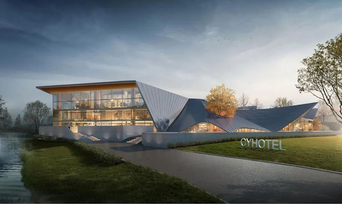 項目不同于以往規矩的建筑設計,將黃山楓葉融入設計中,形態回應如鳳,與黃山相望,由自然而來。揭開朝陽村“詩意民宿村”的未來畫卷。建筑似從地面生長蔓延而出,宛如起伏的山體的延續。將建筑融入到環境中,綿延了城市的風光,消解了硬性的界面形式,能從各個角落望見窗外的風景,盡最大可能地與自然進行對話。