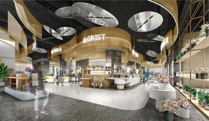 項目分為三大自然主題柔水靈韻、綠野仙境、斑斕星河。通過現代主義空間和藝術融合,以“點”的跳躍、“線”的硬朗、“面”的柔和,一層一概念,一店一設計,交匯融合成“多面魔盒”,讓“沉浸式購物體驗”不再局限于單點,而是延伸到整個商業空間,充分以藝術、人文打造新的潮流地標。