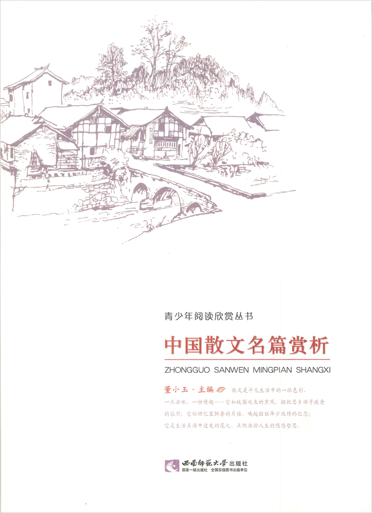 《中國散文名篇賞析 》 是由 西南師范大學出版社出版的散文合集,全書按親情、鄉情、愛情、哲思等主題分類,選取中國近現代44篇優秀散文作品分進行原創性賞析,所選篇目涉及冰心的《荷葉母親》、鐵凝的《洗桃花水的時節》、余光中的《假如我有九條命》、錢鐘書的《論快樂》、張愛玲的《愛》、陸蠡的《囚綠記》等,選文作者既有著名的文學家,也有其他領域的代表人物。