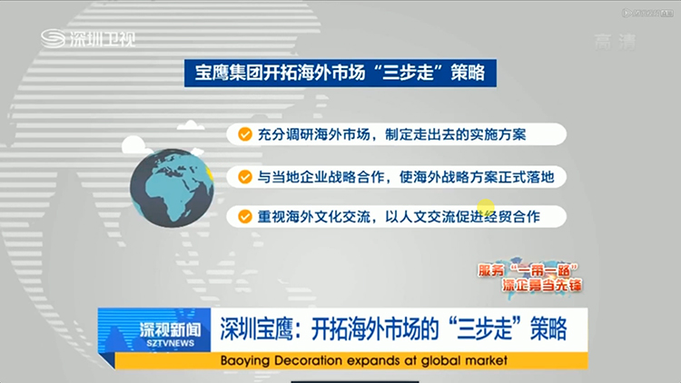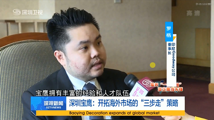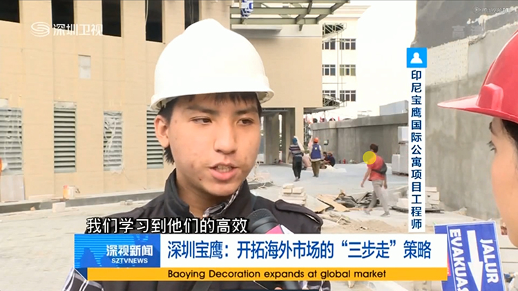 7月5日晚,深圳衛視《深視新聞》播出《深圳寶鷹:開拓海外市場的“三步走”戰略》,以印尼寶鷹建設集團成立以來的成長壯大為樣本,全面反映寶鷹集團海外戰略落地情況及發展經驗。深圳衛視新聞中心采訪組記者赴印尼寶鷹建設集團及印尼寶鷹承建項目實地采訪拍攝,相繼采訪了印尼寶鷹建設集團合作伙伴、集團工作人員及高管。