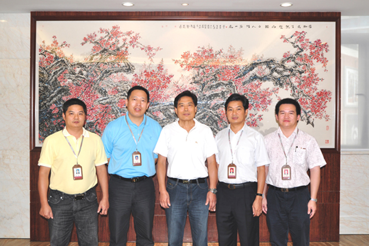 宋協(xié)昌秘書長(zhǎng)(中)到我集團(tuán)考察調(diào)研與古少明董事長(zhǎng)(右二)、許平常務(wù)副總裁(右四)、古樸副總裁(右一)等集團(tuán)領(lǐng)導(dǎo)合影留念