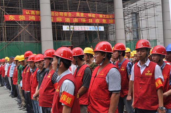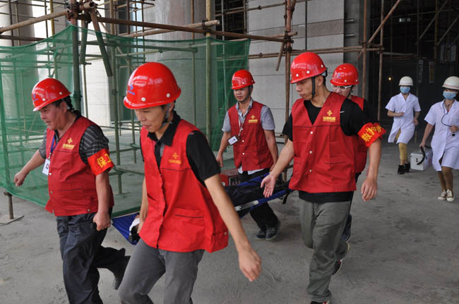 為加強在建工地的安全管理,增強工人的安全意識,提高對建筑施工現場突發事故的實戰能力,檢驗公司安全生產事故應急救援預案合理性與可行性。8月19日上午,由集團質量安全部與工程管理中心工程四部聯合組織的建筑施工現場應急演練在指定項目工地舉行,集團常務副總裁許平參加了演練現場觀摩,200多名施工人員人與工程業主方相關人員配合參加了此次演練。