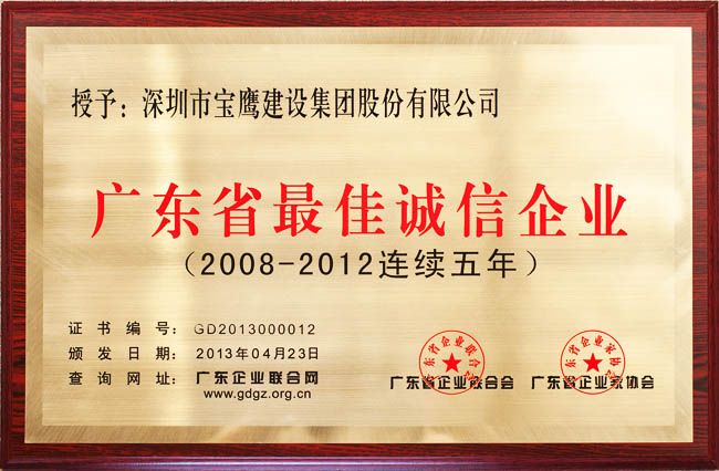 2013年4月23日,由廣東省企業(yè)聯(lián)合會、廣東省企業(yè)家協(xié)會主辦的“2013年廣東省企業(yè)家活動日”在廣州隆重舉行,大會對2012年度表現(xiàn)優(yōu)秀的企業(yè)、企業(yè)家進(jìn)行表彰。寶鷹集團(tuán)憑借著優(yōu)異的表現(xiàn)連續(xù)三年(2010年—2012年)榮獲“廣東省優(yōu)秀企業(yè)”稱號,連續(xù)五年(2008年—2012年)榮獲“廣東省最佳誠信企業(yè)”稱號。同時(shí),集團(tuán)董事局主席古少明榮獲“2012年度廣東省優(yōu)秀企業(yè)家”稱號。