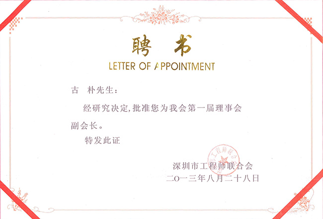 集團副總裁古樸榮聘為深圳市工程師聯合會第一屆理事會副會長