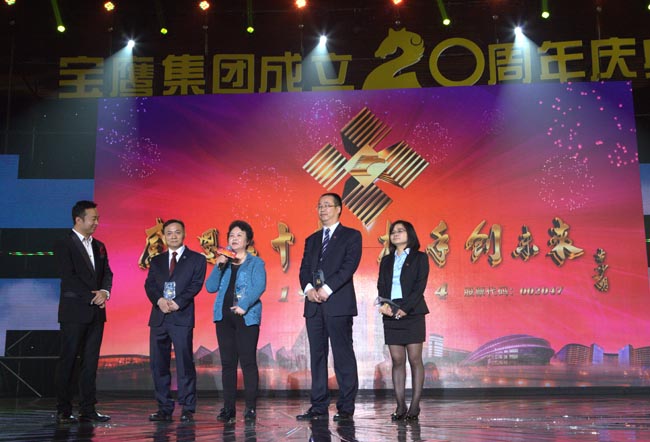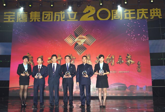 慶典會上,集團還對20年來為寶鷹發展付出青春熱血的“10年以上資深員工”、“突出貢獻者”、“創業者”進行了表彰,并頒發榮譽獎杯。獲獎代表都發表了真摯的感言,讓晚會成為一個勵志的晚會、感動的晚會。