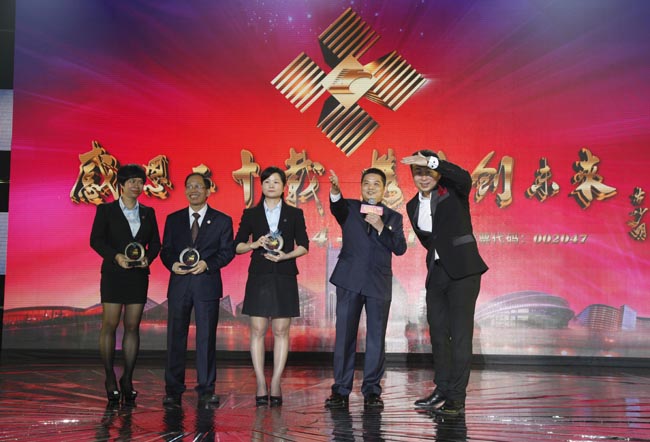 中國建筑裝飾協會名譽會長馬挺貴先生為創業獎獲得者頒獎