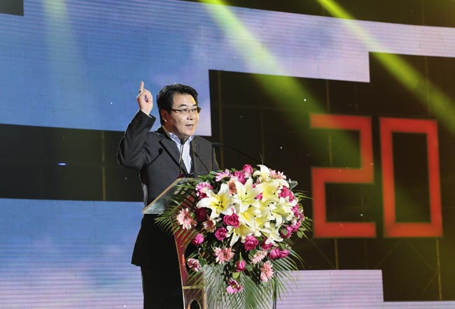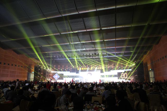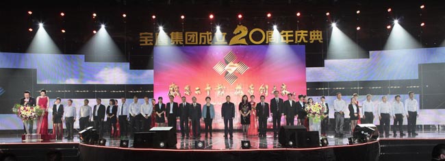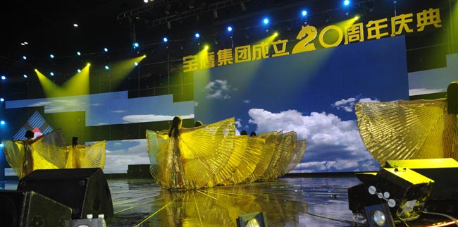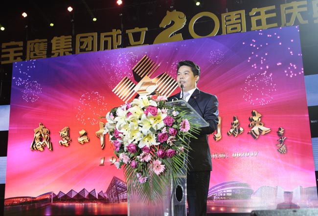 慶典活動由廣東衛視著名節目主持人王鵬、李佳聯袂主持,以古少明主席親筆題寫“感恩二十載,攜手創未來”的晚會活動主題為開篇。慶典儀式上,古少明主席發表了熱情洋溢、充滿正能量的講話,對參加慶典活動的各位領導和嘉賓表示了熱烈的歡迎,對創業領路人及長期以來關心、支持寶鷹事業發展的各級領導和社會各界人士表示了誠摯的謝意,他還回顧了寶鷹集團由一個名不見經傳的小公司發展到2013年年底成功上市并于近期布局移動互聯網電商的征程,同時闡述了今后20年“寶鷹夢”的內涵,即“要繼續圍繞實現中國夢的戰略發展黃金機遇,在繼續強化建筑裝飾業務主體的基礎上,實現寶鷹多元化、國際化的戰略構想”。集團領導古少波、成湘文也分別上臺致辭,全面回顧了寶鷹集團自1994年成立以來的發展歷程,系統總結了過去20年的付出、收獲和經驗,明確指出了今后一個時期的發展戰略和發展方針,號召全體員工萬眾一心、眾志成城為實現美麗的“寶鷹夢”以及更偉大的“中國夢”而努力奮斗。