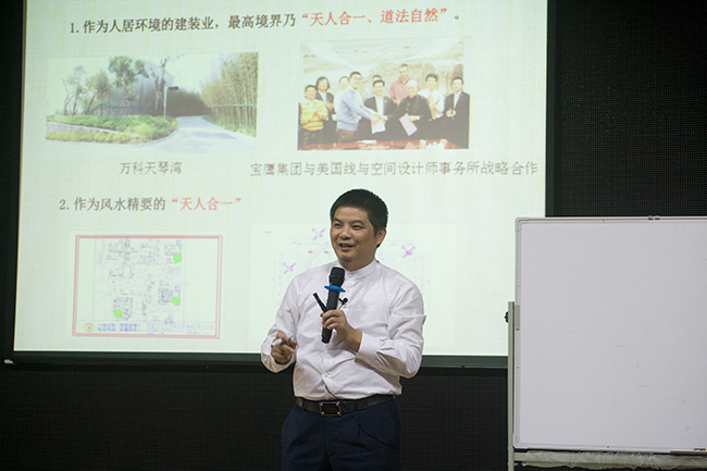 本次,來自包括寶鷹集團在內的7位深圳裝飾行業的專家教授以及200多學員參加了為期兩天的培訓。其中,寶鷹集團副總裁古樸為學員們帶來題為《天人合一》的精彩講座,讓學員們頓時耳目一新,掌聲不斷。講座中,古樸副總裁探討了天人合一的思想在建筑裝飾行業的現實意義。他介紹,建筑裝飾行業其實就是人居環境,其最高境界就是天人合一、道法自然,中國自古講風水,似乎很神秘不可測,而天人合一正是風水精要,風水其實就是古人環境選擇的學問,其核心是生態環境,要求在特定的小環境內部相互協調,以達到生態環境內部的統一。他還指出,天人合一的核心內涵就是以人為本,而以人為本的最高形態正是天人合一,必須同時看到此兩面,才可謂辯證統一。