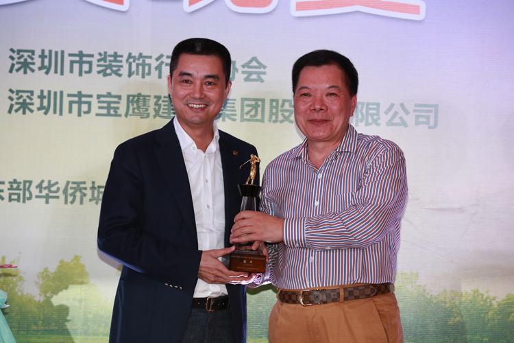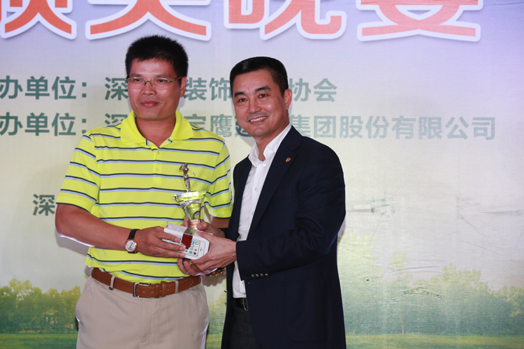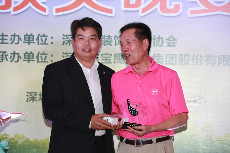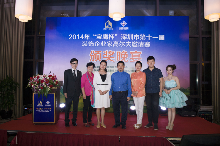 伴著一曲由寶鷹好聲音成員帶來的清亮的《帶我到山頂》,頒獎晚會熱情開演。主持人熱情地介紹完參賽的主要嘉賓后,深圳裝飾行業(yè)協(xié)會會長高剛致辭盛贊此次邀請賽的成功,對前來參與的行業(yè)精英表示感謝和對獲獎的參與者表示祝賀,并強調舉辦深圳市裝飾企業(yè)家協(xié)會高爾夫邀請賽的目的是希望裝飾企業(yè)家在忙碌之余加強交流、團結共進、共謀發(fā)展。中國裝飾行業(yè)協(xié)會名譽會長馬挺貴先生在發(fā)表獲獎感言時表示,感謝深圳裝飾行業(yè)協(xié)會和寶鷹集團提供這樣一個交友論道的平臺,并表示希望深圳裝飾行業(yè)能像這場賽事一樣,和諧論道,實現共贏。最終,濱樂裝飾設計總監(jiān)朱三軍、中建南方黃泳先生、謝勇先生三位分別攬得總桿獎的冠、亞、季軍;凈桿獎的冠、亞、季軍分別為廣田股份董事局主席葉遠西、深裝協(xié)會長高剛先生和瑞和股份董事長李介平;金粵幕墻副總裁萬樹春摘得最遠距離獎;李永光先生摘得最近旗桿獎,張鴻蘭女士則榮獲了女子優(yōu)勝獎,深裝協(xié)名譽會長何文祥獲得長青獎,原中國建設部部長林漢雄和中裝協(xié)名譽會長馬挺貴獲得了尊長獎。晚會在領導的致辭和頒獎的間歇穿插著來自其他寶鷹好聲音成員傾情的文藝演出,更有來自寶鷹集團印尼代表的表演,這些演出進一步活躍了頒獎晚會的氣氛,將參會嘉賓愉悅的心情引向頂點,象征了這場晚會空前的成功。