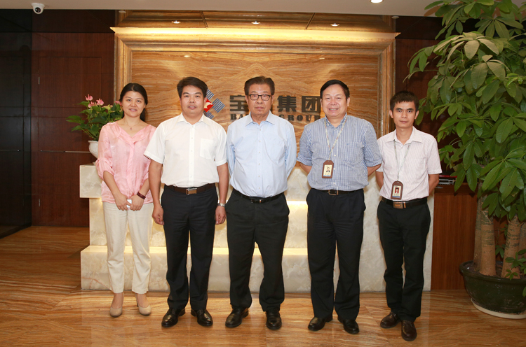 合影(中為深圳市企業(yè)聯(lián)合會、深圳市企業(yè)家協(xié)會吳井田執(zhí)行會長,左二為寶鷹集團古少波董事長,右二為寶鷹集團成湘文總裁)