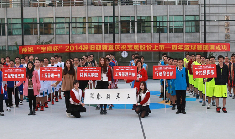 今日,“寶鷹杯” 2014 辭舊迎新暨慶祝寶鷹股份上市一周年籃球賽亦在明媚的冬日陽光中熱烈開賽。整裝待發的十二支球隊虎虎生風,無不昭示著寶鷹人的蓬勃精神和昂揚姿態。正如寶鷹集團董事長古少波在開幕式致辭中所說:寶鷹人無論在何種比賽中都將賽出友誼、賽出水平、賽出風格。我們相信,此次籃球賽一定能夠賽出寶鷹人的團結、寶鷹人的士氣、寶鷹人的精神。