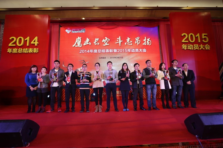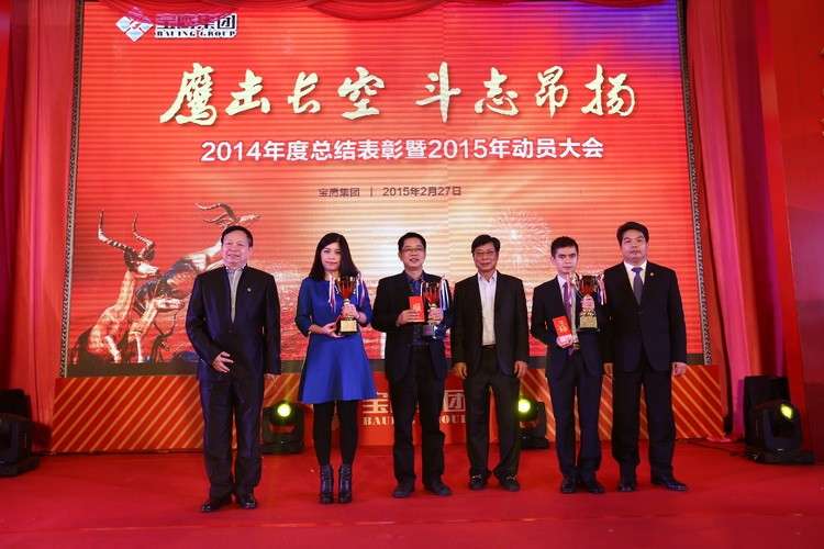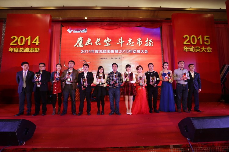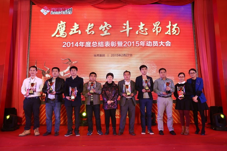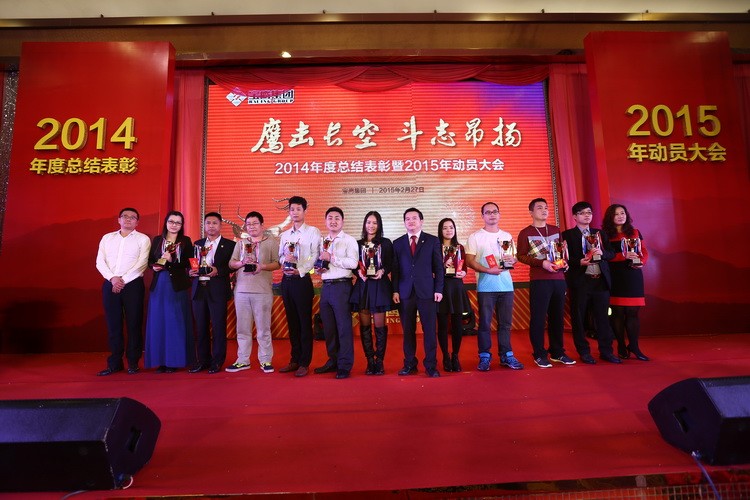 大會隨著古少波董事長的精彩致辭正式拉開帷幕。古少波董事長說: 2014 年是我們的事業絢爛多彩的一年,是我們的收獲豐碩喜人的一年,也是我們的信心無比堅定的一年。我們應趁著春風和春陽,用勤勞和智慧譜就樂曲,用寶鷹人的誓言當詞,唱出最美的 2015 年寶鷹之歌。